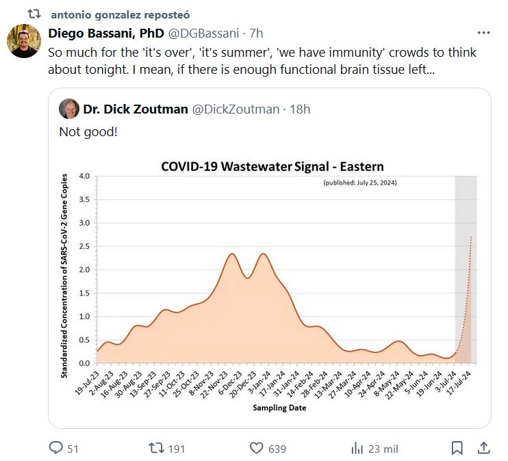 AUMENTO EXPLOSIVO EN LA CURVA COVID (EN INGLÉS) Hasta aquí llegan los pensamientos de los que dicen «se acabó», «es verano», «tenemos inmunidad». Quiero decir, si queda suficiente tejido cerebral funcional… Dr. Dick Zoutman @DickZoutman