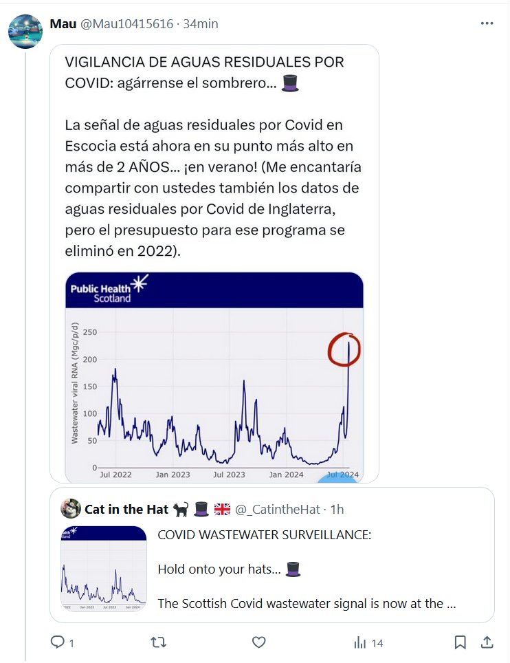 «FIN DE PANDEMIA»? AGUAS RESIDUALES CON COVID EN ESCOCIA: EN SU PUNTO MÁS ALTO EN 2 AÑOS! Posted on agosto 1, 2024 por coronado https://x.com/_CatintheHat/status/1818929717656903809