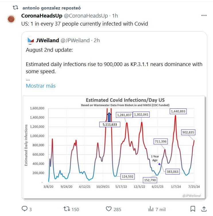 USA SUCK! (EN INGLÉS) EE.UU.: 1 de cada 37 personas está actualmente infectada con Covid Posted on agosto 2, 2024 por coronado