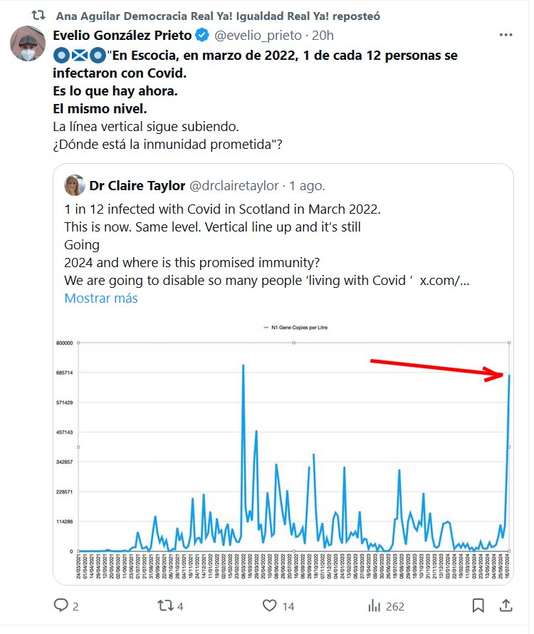 🔘🏴󠁧󠁢󠁳󠁣󠁴󠁿🔘»En Escocia, en marzo de 2022, 1 de cada 12 personas se infectaron con Covid. Es lo que hay ahora. El mismo nivel. La línea vertical sigue subiendo. ¿Dónde está la inmunidad prometida»?