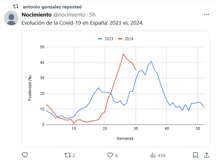 EXACTAMENTE IGUAL! Y LA INMUNIDAD PROMETIDA? Evolución de la Covid-19 en España: 2023 vs. 2024 Posted on agosto 3, 2024 por coronado