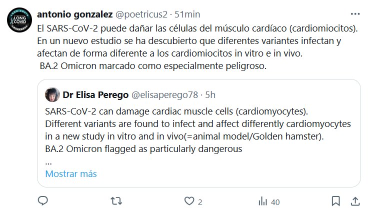 NUNCA FUE LEVE Y ELLOS LO SABÍAN El SARS-CoV-2 puede dañar las células del músculo cardíaco (cardiomiocitos). En un nuevo estudio se ha descubierto que diferentes variantes infectan y afectan de forma diferente a los cardiomiocitos in vitro e in vivo. BA.2 Omicron marcado como especialmente peligroso.