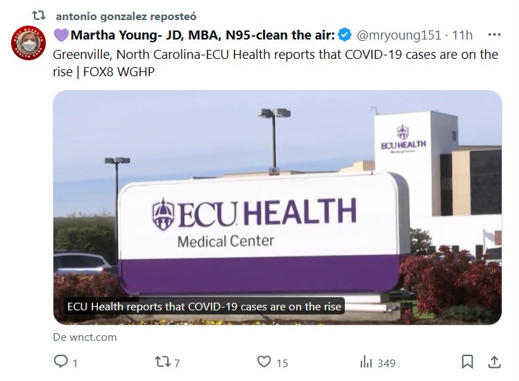 EN INGLÉS Greenville, Carolina del Norte: ECU Health informa que los casos de COVID-19 están aumentando Posted on agosto 4, 2024 por coronado