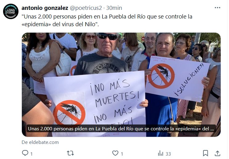 PARAPANDEMIA-SS «¡NO MÁS MUERTE! ¡NO MÁS MIEDO!» «Unas 2.000 personas piden en La Puebla del Río que se controle la «epidemia» del virus del Nilo» Posted on agosto 5, 2024 por coronado https://www.eldebate.com/espana/andalucia/sevilla/20240805/2000-personas-piden-puebla-rio-controle-epidemia-virus-nilo_218154.html#utm_source=rrss-comp&utm_medium=tw&utm_campaign=fixed-btn