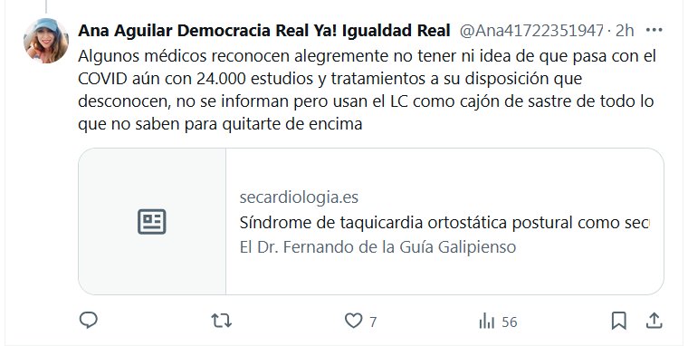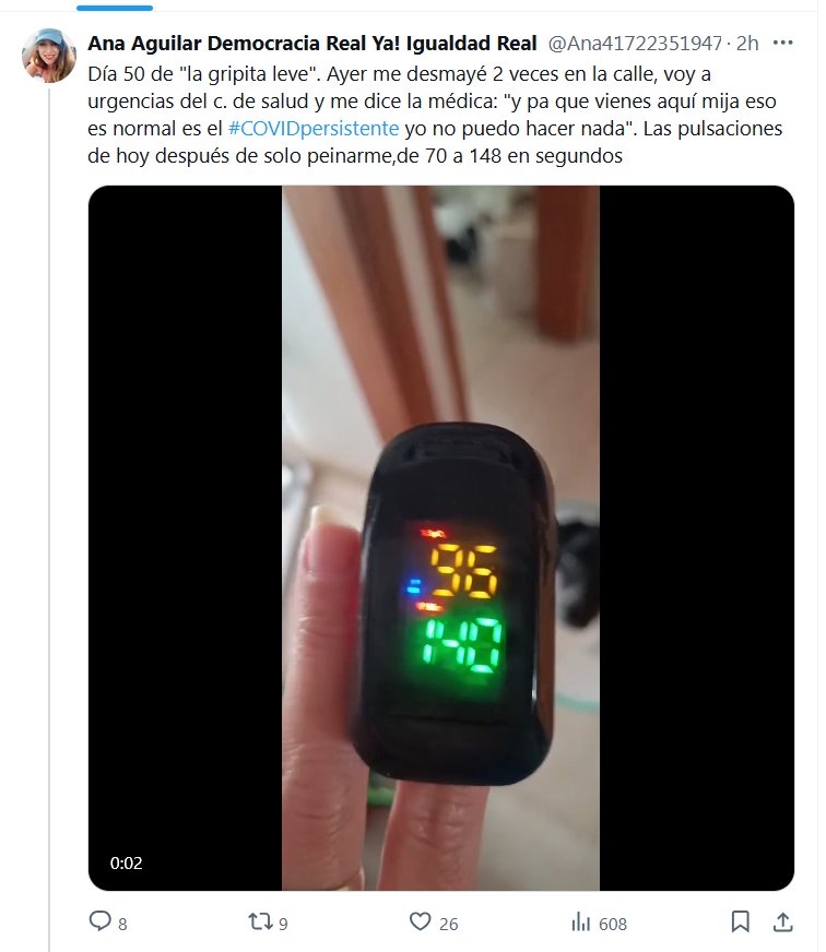 DE VERDAD NO QUIERES USAR MASCARILLA? TESTIMONIOS Día 50 de «la gripita leve». Ayer me desmayé 2 veces en la calle, voy a urgencias del c. de salud y me dice la médica: «y pa que vienes aquí mija eso es normal es el #COVIDpersistente yo no puedo hacer nada». Las pulsaciones de hoy después de solo peinarme,de 70 a 148 en segundos
