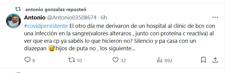 TESTIMONIOS #covidpersistente El otro día me derivaron de un hospital al clínic de bcn con una infección en la sangre(valores alteraros , junto con proteína c reactiva) al ver que era cp #covidpersistente ya sabéis lo que hicieron no? Silencio y pa casa con un diazepan 😅hijos de puta no , los siguiente…