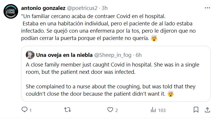 «Un familiar cercano acaba de contraer Covid en el hospital. Estaba en una habitación individual, pero el paciente de al lado estaba infectado. Se quejó con una enfermera por la tos, pero le dijeron que no podían cerrar la puerta porque el paciente no quería. 🤯