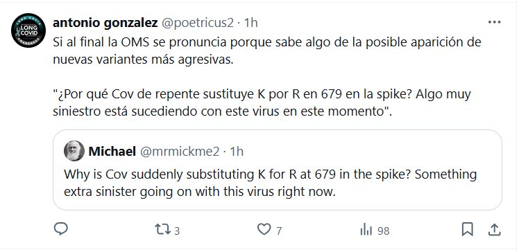ORGANIZACIÓN MUNDIAL DE LA SALUD O DE LA ENFERMEDAD? Si al final la OMS se pronuncia porque sabe algo de la posible aparición de nuevas variantes más agresivas. «¿Por qué Cov [COVID] de repente sustituye K por R en 679 en la spike? Algo muy siniestro está sucediendo con este virus en este momento»