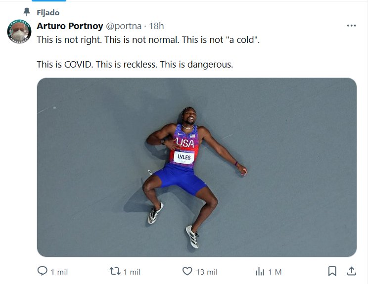 ATLETA DE USA CAÍDO (EN INGLÉS) Esto no está bien. Esto no es normal. Esto no es «un resfriado». Esto es COVID. Esto es imprudente. Esto es peligroso. Posted on agosto 9, 2024 por coronado TODA UNA METÁFORA!