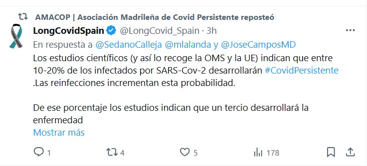 NO ES LEVE Los estudios científicos (y así lo recoge la OMS y la UE) indican que entre 10-20% de los infectados por SARS-Cov-2 desarrollarán #CovidPersistente .Las reinfecciones incrementan esta probabilidad.