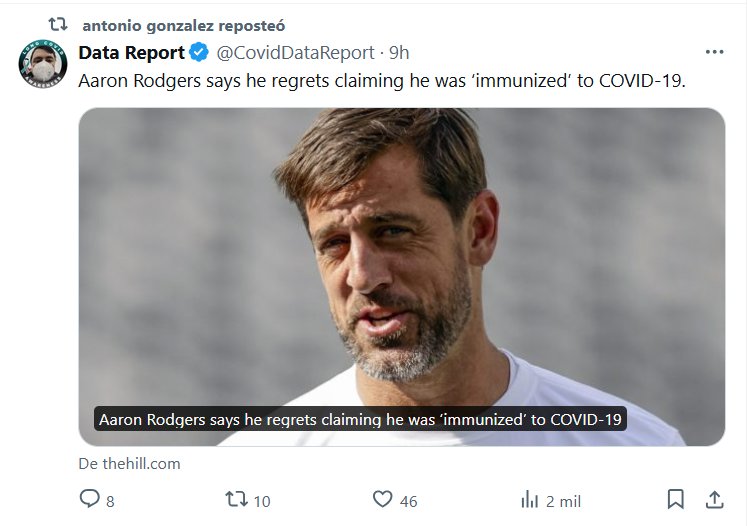 DESPIERTAN! (EN INGLÉS) Aaron Rodgers dice que se arrepiente de haber afirmado que estaba “inmunizado” contra el COVID-19 Posted on agosto 13, 2024 por coronado