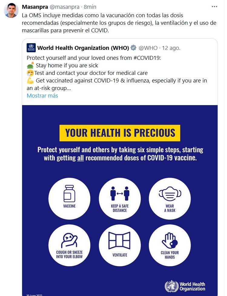 DESPUÉS DE DESACONSEJAR MASCARILLAS, NEGAR QUE FUERA «AIRBONE» Y DECRETAR EL FIN DE PANDEMIA? La OMS incluye medidas como la vacunación con todas las dosis recomendadas (especialmente los grupos de riesgo), la ventilación y el uso de mascarillas para prevenir el COVID