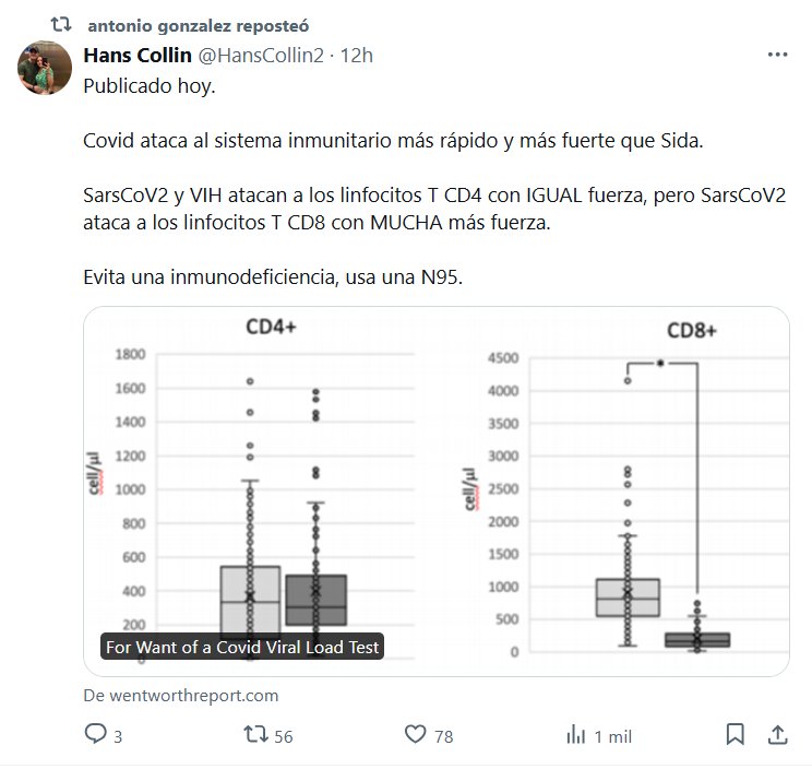 COVID≠GRIPE -> COVID≈SIDA Covid ataca al sistema inmunitario más rápido y más fuerte que Sida Posted on agosto 14, 2024 por coronado https://wentworthreport.com/for-want-of-a-covid-viral-load-test/