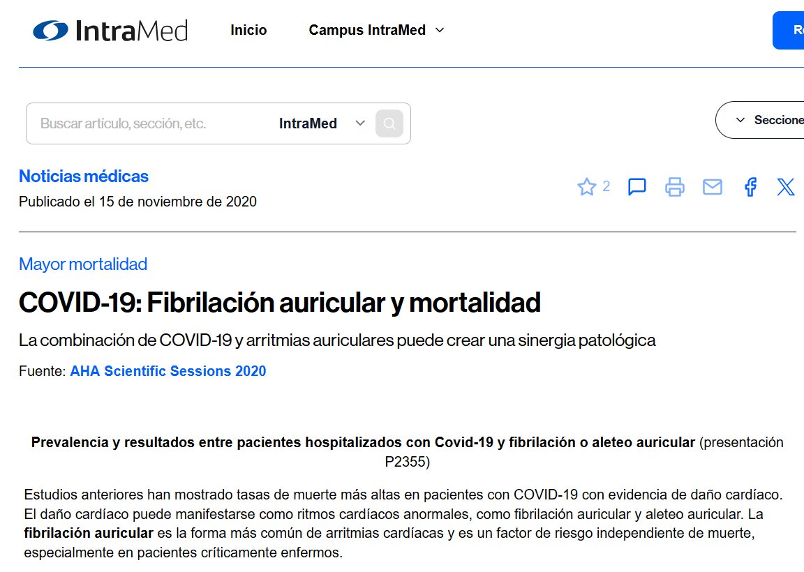 COVID-19: Fibrilación auricular y mortalidad Posted on agosto 20, 2024 por coronado https://www.intramed.net/content/66be48f78d63200246acb990