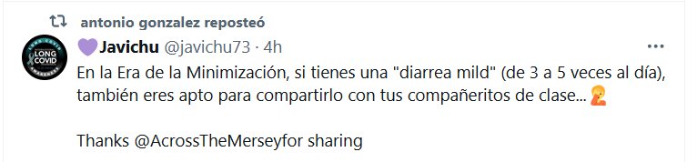 NODIGAMOSCOVID HACE ESTRAGOS En la Era de la Minimización, si tienes una «diarrea mild» (de 3 a 5 veces al día), también eres apto para compartirlo con tus compañeritos de clase…🤦 Posted on agosto 20, 2024 por coronado https://x.com/AcrossTheMersey/status/1825653420579237906