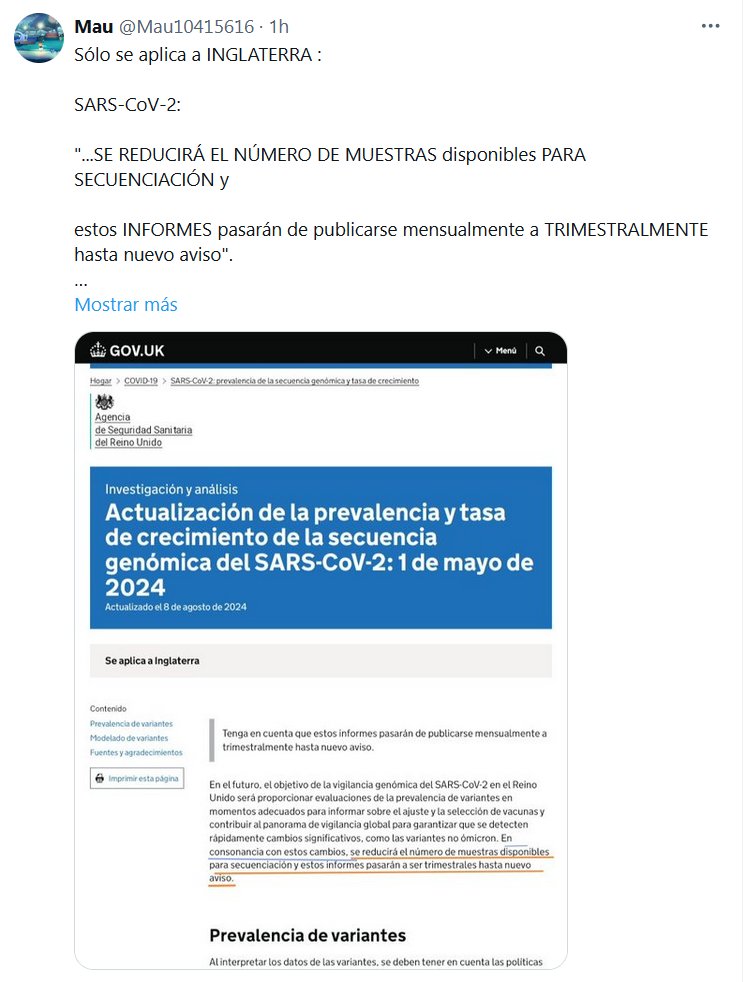 OMERTÁ COVID A FULL! Sólo se aplica a INGLATERRA : SARS-CoV-2: «…SE REDUCIRÁ EL NÚMERO DE MUESTRAS disponibles PARA SECUENCIACIÓN y estos INFORMES pasarán de publicarse mensualmente a TRIMESTRALMENTE hasta nuevo aviso».