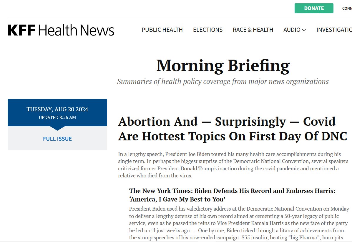 SURPRISE, SURPRISE! EN INGLÉS El aborto y, sorprendentemente, el Covid son los temas más candentes en el primer día del Comité Nacional Demócrata Posted on agosto 20, 2024 por coronado https://kffhealthnews.org/morning-breakout/abortion-and-surprisingly-covid-are-hottest-topics-on-first-day-of-dnc/ GOOGLE TRANSLATE: https://kffhealthnews-org.translate.goog/morning-breakout/abortion-and-surprisingly-covid-are-hottest-topics-on-first-day-of-dnc/?_x_tr_sl=auto&_x_tr_tl=es&_x_tr_hl=es-419