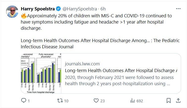 EN INGLÉS 🔥Aproximadamente el 20 % de los niños con MIS-C y COVID-19 continuaron teniendo síntomas, como fatiga y dolor de cabeza, más de un año después del alta hospitalaria.