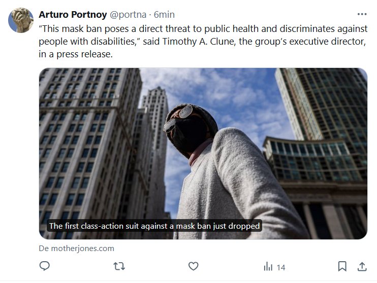 EN INGLÉS “Esta prohibición de las mascarillas supone una amenaza directa a la salud pública y discrimina a las personas con discapacidades”, dijo Timothy A. Clune, director ejecutivo del grupo, en un comunicado de prensa