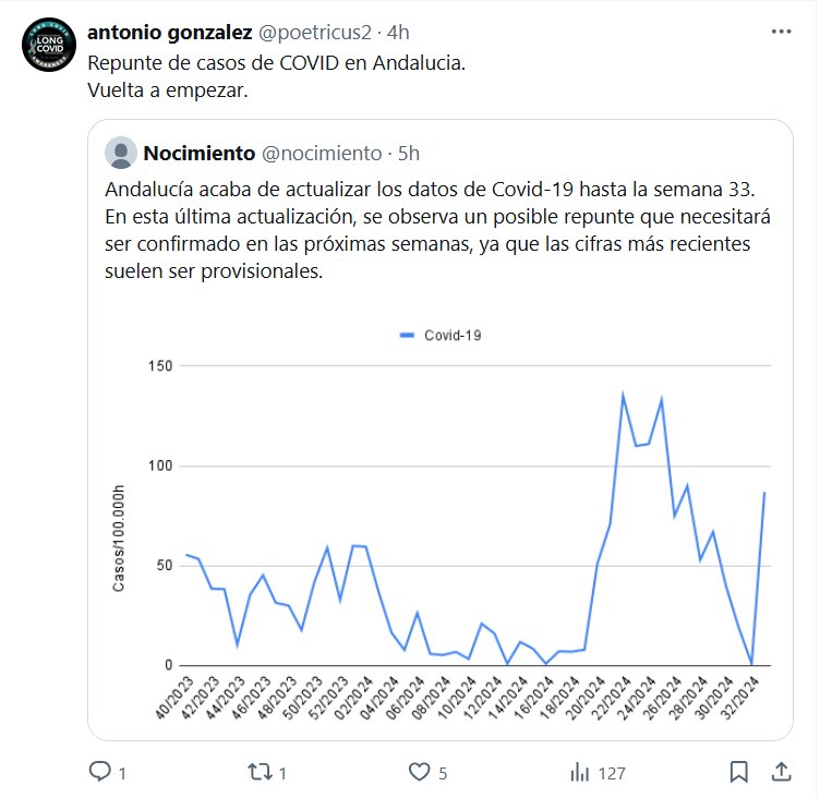 PANDEMIA LIBERADA=PANDEMIA ETERNA Repunte de casos de COVID en Andalucia. Vuelta a empezar Posted on agosto 27, 2024 por coronado