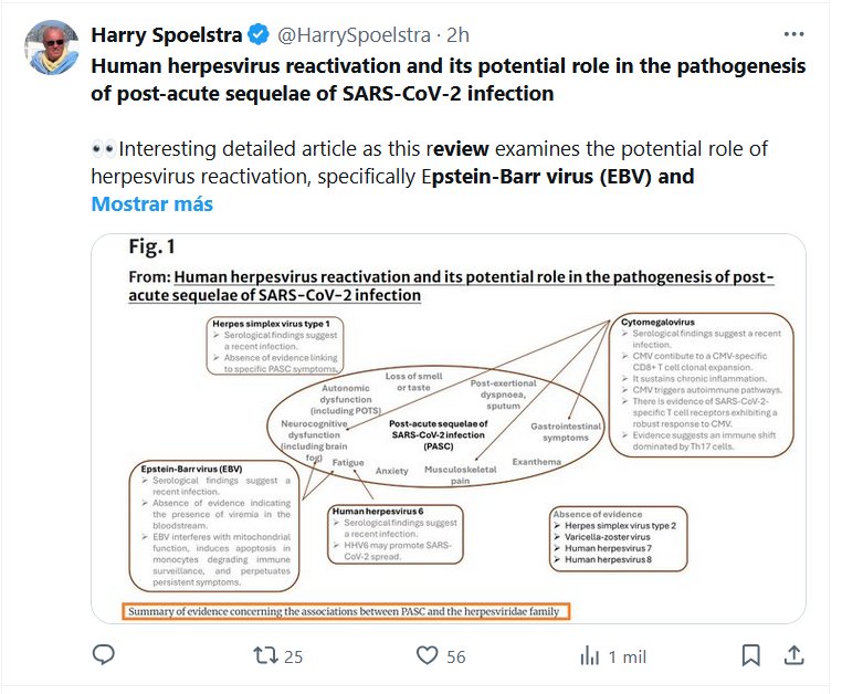 EN INGLÉS Reactivación del virus del herpes humano y su posible papel en la patogenia de las secuelas post-agudas de la infección por SARS-CoV-2 Posted on agosto 31, 2024 por coronado https://x.com/HarrySpoelstra/status/1829808383395824062