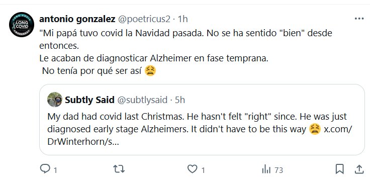 TESTIMONIOS Mi papá tuvo covid la Navidad pasada. No se ha sentido «bien» desde entonces. Le acaban de diagnosticar Alzheimer en fase temprana. No tenía por qué ser así 😫 Posted on agosto 31, 2024 por coronado