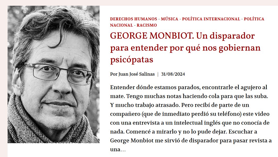 ES VIRAL: CÓMO LLEGÓ HITLER AL PODER? CÓMO HIZO PARA QUE LO SIGUIERAN AL DESASTRE? CÓMO SE REPITE HOY LA MISMA HISTORIA CON LOS LÍDERES MUNDIALES? Posted on septiembre 1, 2024 por coronado GEORGE MONBIOT. Un disparador para entender por qué nos gobiernan psicópatas PorJuan José Salinas 31/08/2024