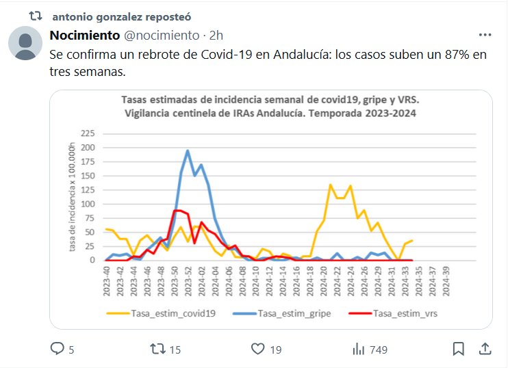PANDEMIA LIBERADA=NEVERENDING STORY Se confirma un rebrote de Covid-19 en Andalucía: los casos suben un 87% en tres semanas Posted on septiembre 3, 2024 por coronado