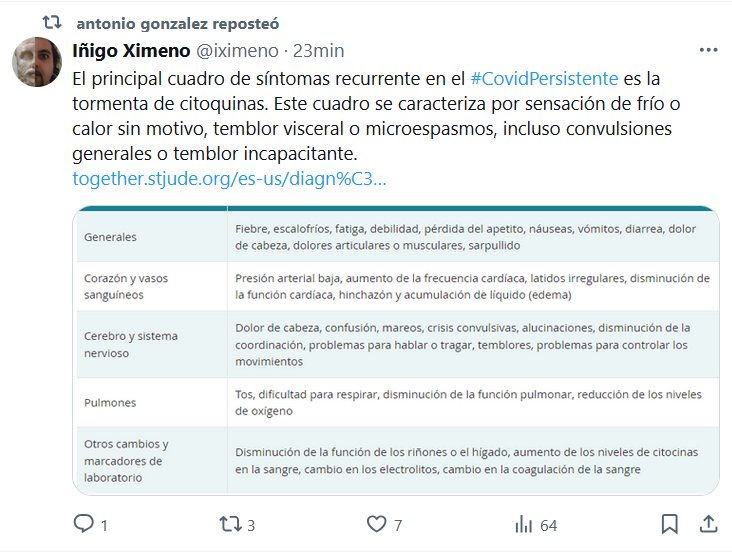 El principal cuadro de síntomas recurrente en el #CovidPersistente es la tormenta de citoquinas. Este cuadro se caracteriza por sensación de frío o calor sin motivo, temblor visceral o microespasmos, incluso convulsiones generales o temblor incapacitante