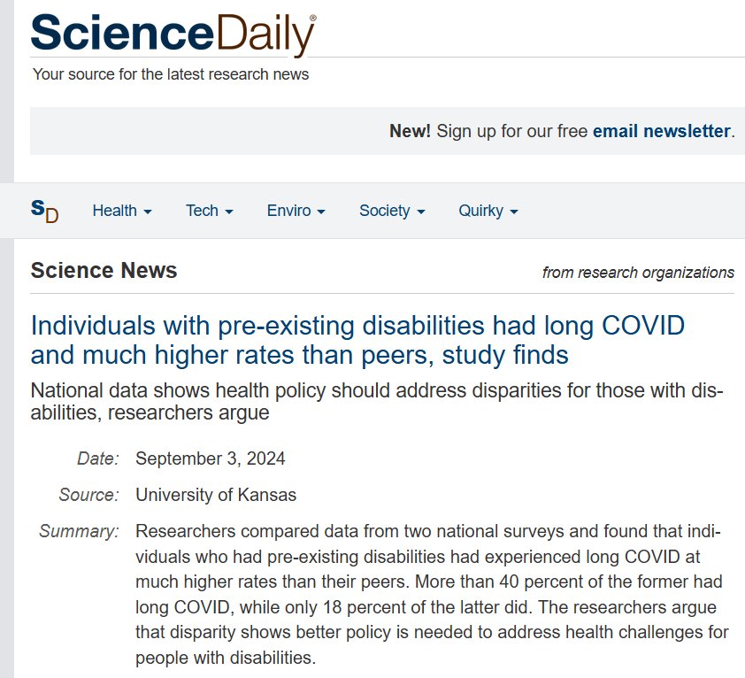 EN INGLÉS Un estudio revela que las personas con discapacidades preexistentes habían sufrido COVID-19 de larga duración y en tasas mucho más altas que sus pares Posted on septiembre 7, 2024 por coronado https://www.sciencedaily.com/releases/2024/09/240903144848.htm
