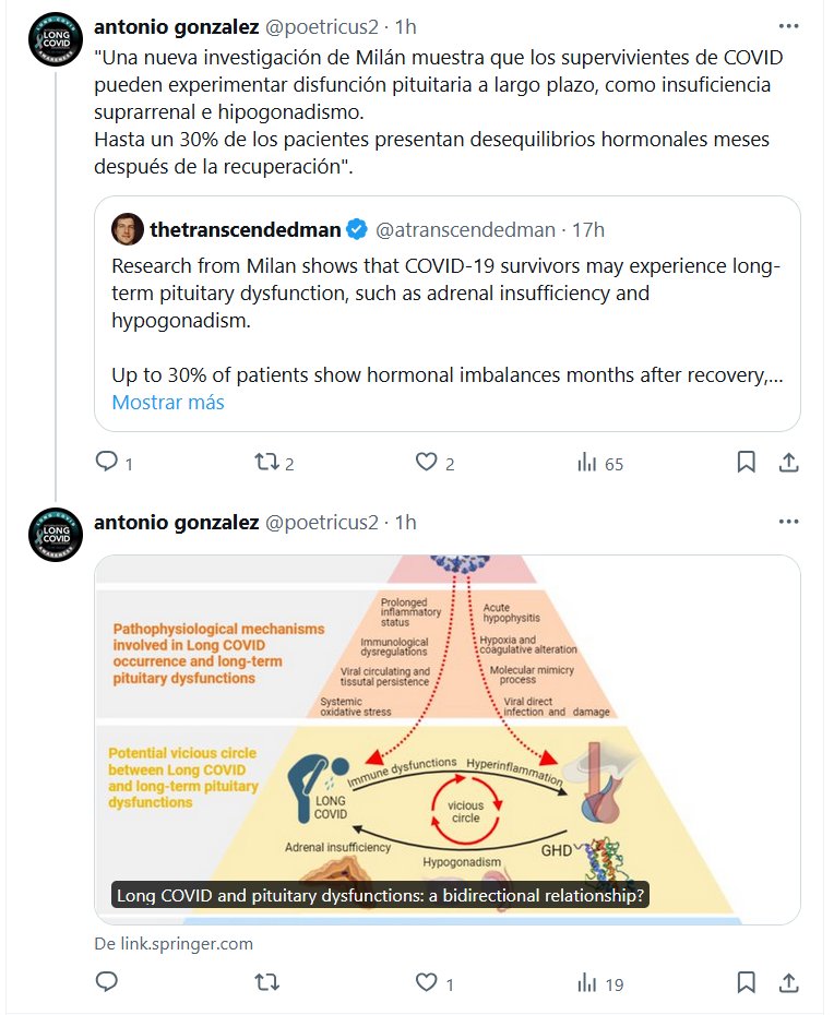 «Una nueva investigación de Milán muestra que los supervivientes de COVID pueden experimentar disfunción pituitaria a largo plazo, como insuficiencia suprarrenal e hipogonadismo. Hasta un 30% de los pacientes presentan desequilibrios hormonales meses después de la recuperación»
