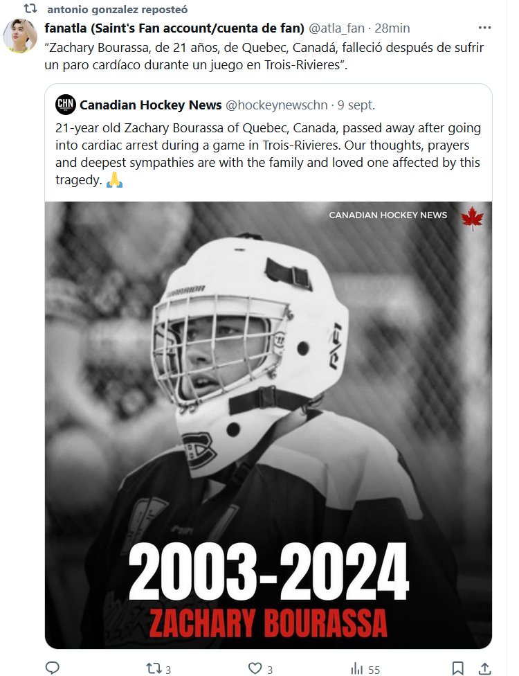 EXTRAÑAS MUERTES EN LA ERA COVID: HOCKEY SOBRE HIELO CANADIENSE, FALLECE JUGADOR DE 21 AÑOS Posted on septiembre 10, 2024 por coronado