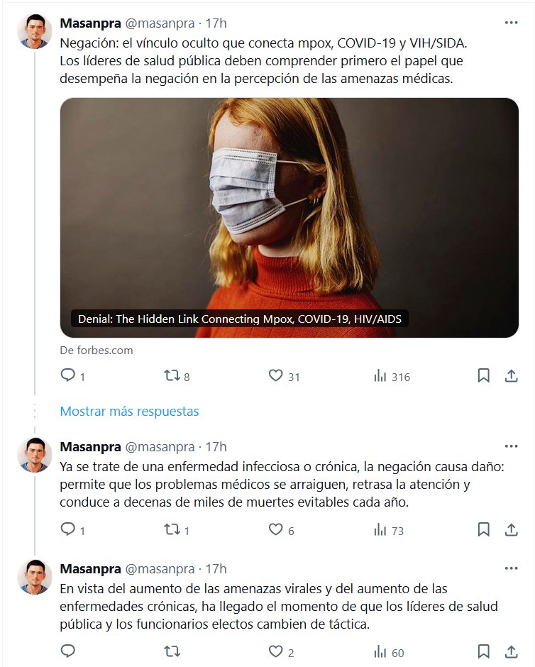 Negación: el vínculo oculto que conecta mpox, COVID-19 y VIH/SIDA. Los líderes de salud pública deben comprender primero el papel que desempeña la negación en la percepción de las amenazas médicas.