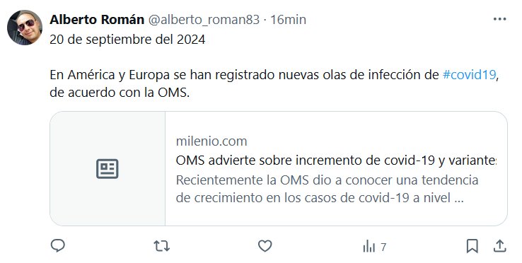 Y EL PUBLICITADO «FIN DE PANDEMIA»? 20 de septiembre del 2024 En América y Europa se han registrado nuevas olas de infección de #covid19, de acuerdo con la OMS Posted on septiembre 20, 2024 por coronado https://www.milenio.com/ciencia-y-salud/oms-advierte-incremento-covid-19-variantes-graves