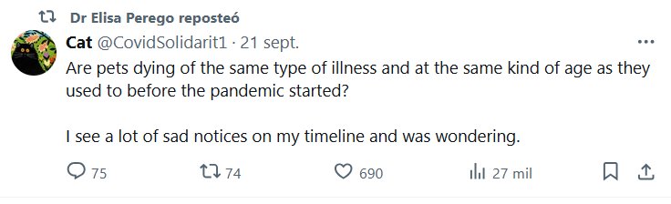Dra Elisa Perego reposteó Cat @CovidSolidarit1 ¿Las mascotas están muriendo del mismo tipo de enfermedad y a la misma edad que antes de que comenzara la pandemia? Veo muchos avisos tristes en mi cronología y me LO preguntaba