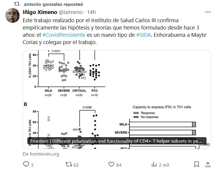 🇪🇸 Este trabajo realizado por el Instituto de Salud Carlos III confirma empíricamente las hipótesis y teorías que hemos formulado desde hace 3 años: el #CovidPersistente es un nuevo tipo de #SIDA. Enhorabuena a Mayte Corias y colegas por el trabajo