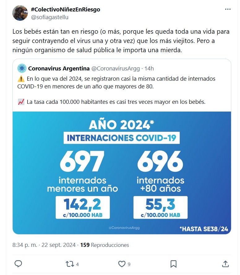 FUERTE Y CLARO #ColectivoNiñezEnRiesgo @sofiagastellu Los bebés están tan en riesgo (o más, porque les queda toda una vida para seguir contrayendo el virus una y otra vez) que los más viejitos. Pero a ningún organismo de salud pública le importa una mierda.