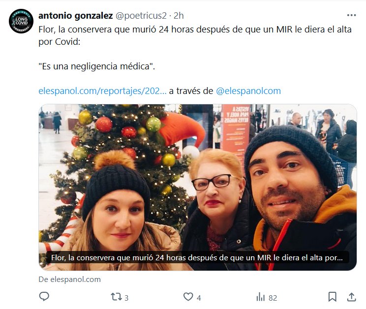 SIGUE SIN SER LEVE Flor, la conservera que murió 24 horas después de que un MIR le diera el alta por Covid: «Es una negligencia médica» Posted on septiembre 24, 2024 por coronado