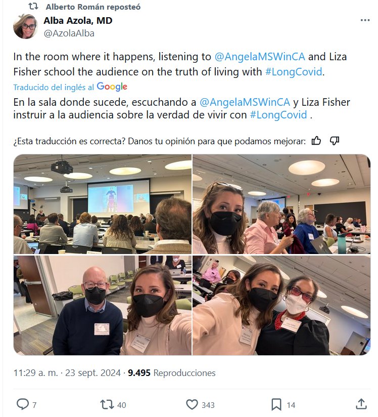 TODOS CON MASCARILLA! En la sala donde sucede, escuchando a @AngelaMSWinCA y Liza Fisher instruir a la audiencia sobre la verdad de vivir con #LongCovid Posted on septiembre 24, 2024 por coronado