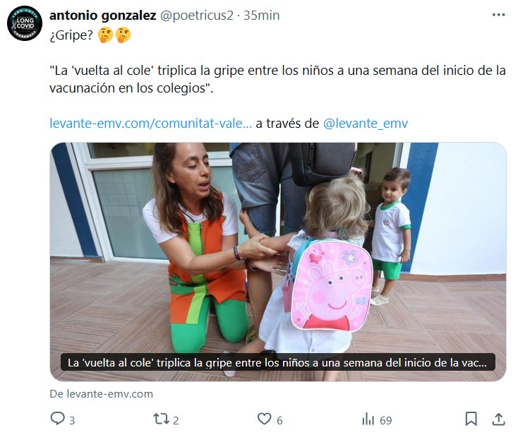 NODIGAMOSCOVID HACE ESTRAGOS ¿Gripe? 🤔🤔 «La ‘vuelta al cole’ triplica la gripe entre los niños a una semana del inicio de la vacunación en los colegios». Posted on septiembre 26, 2024 por coronado