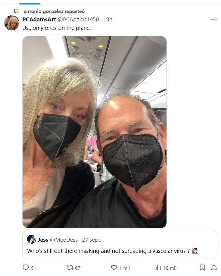 GENTE CON CABEZA PCAdamsArt @PCAdams1950 Nosotros… los únicos en el avión [CON MASCARILLA] Posted on septiembre 30, 2024 por coronado