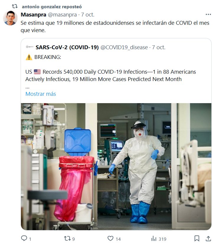 Se estima que 19 millones de estadounidenses se infectarán de COVID el mes que viene Posted on octubre 8, 2024 por coronado