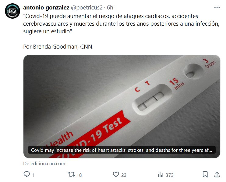 «Covid-19 puede aumentar el riesgo de ataques cardíacos, accidentes cerebrovasculares y muertes durante los tres años posteriores a una infección, sugiere un estudio». Por Brenda Goodman, CNN.