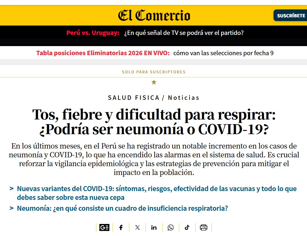 Tos, fiebre y dificultad para respirar: ¿Podría ser neumonía o COVID-19? En los últimos meses, en el Perú se ha registrado un notable incremento en los casos de neumonía y COVID-19, lo que ha encendido las alarmas en el sistema de salud. Es crucial reforzar la vigilancia epidemiológica y las estrategias de prevención para mitigar el impacto en la población.