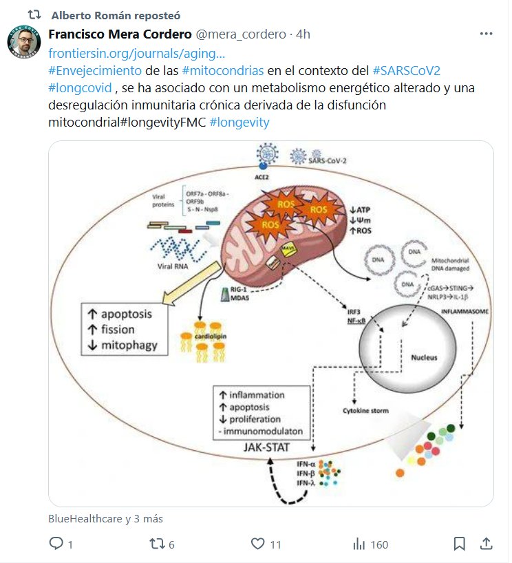 #Envejecimiento de las #mitocondrias en el contexto del #SARSCoV2 #longcovid , se ha asociado con un metabolismo energético alterado y una desregulación inmunitaria crónica derivada de la disfunción mitocondrial#longevityFMC #longevity