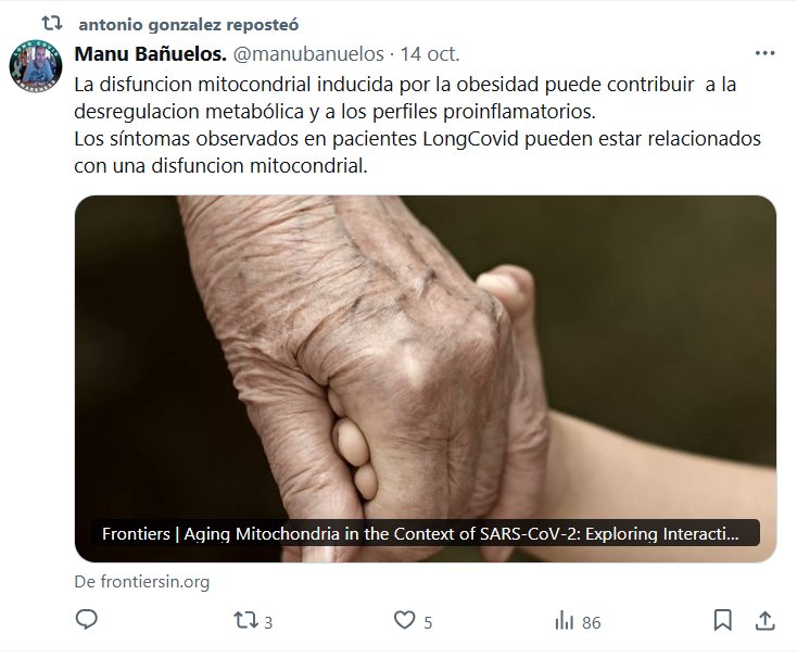 La disfuncion mitocondrial inducida por la obesidad puede contribuir a la desregulacion metabólica y a los perfiles proinflamatorios. Los síntomas observados en pacientes LongCovid pueden estar relacionados con una disfuncion mitocondrial.