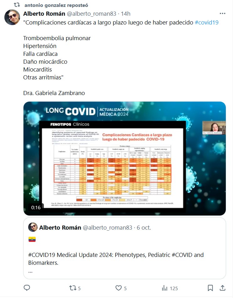 «Complicaciones cardíacas a largo plazo luego de haber padecido #covid19 Tromboembolia pulmonar Hipertensión Falla cardíaca Daño miocárdico Miocarditis Otras arritmias» Dra. Gabriela Zambrano