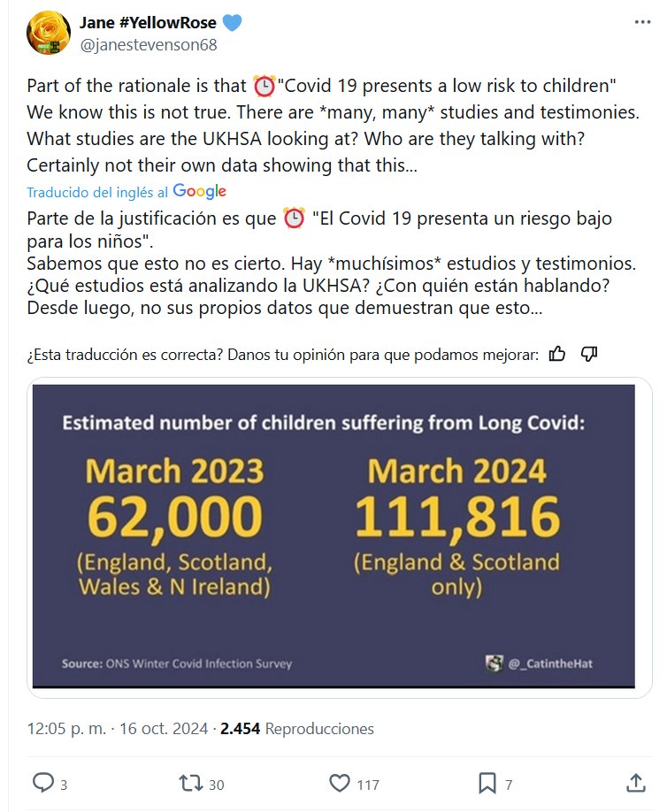 LESA HUMANIDAD: EL COVID PERSISTENTE EN NIÑOS PASÓ DE 62000 EN MARZO DE 2023 A 111.816 EN MARZO DE 2024 Posted on octubre 17, 2024 por coronado https://x.com/janestevenson68/status/1846568278316986394