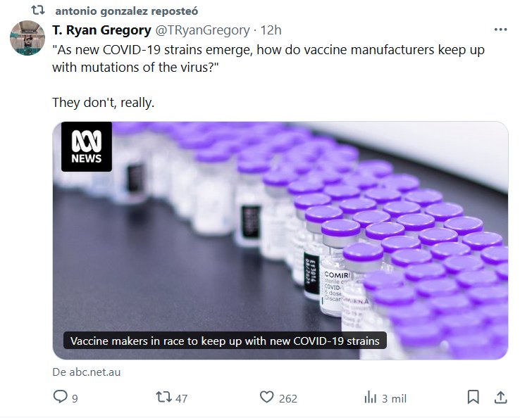 EN INGLÉS T. Ryan Gregory @TRyanGregory «A medida que surgen nuevas cepas de COVID-19, ¿cómo hacen los fabricantes de vacunas para mantenerse al día con las mutaciones del virus?» En realidad, no lo hacen.