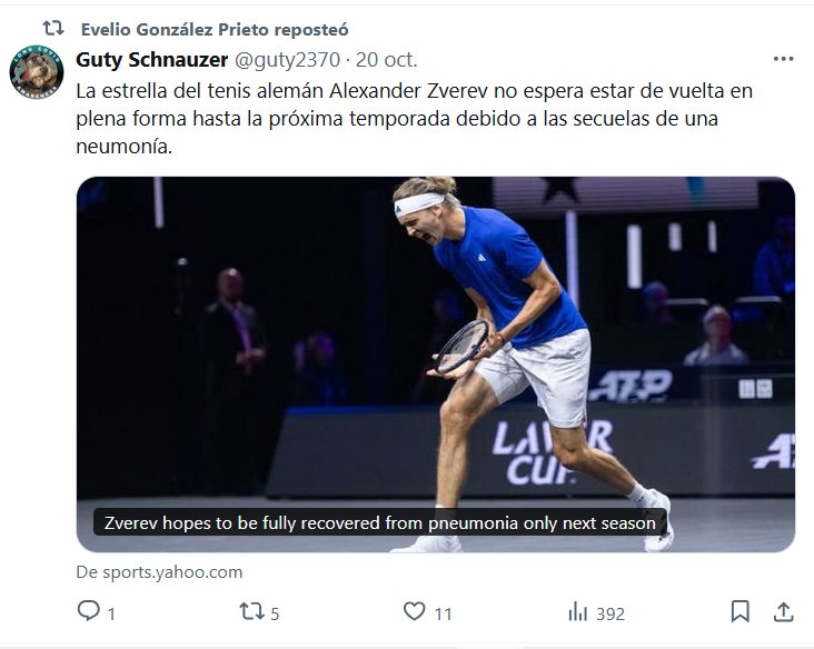 NODIGAMOSCOVID HACE ESTRAGOS La estrella del tenis alemán Alexander Zverev no espera estar de vuelta en plena forma hasta la próxima temporada debido a las secuelas de una neumonía Posted on octubre 22, 2024 por coronado